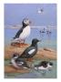 A Painting Of An Atlantic Puffin, Black Guillemots, And Dovekies