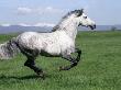 Grey Andalusian Stallion Cantering In Field, Ojai, California, Usa