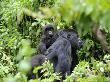 Two Male Silverback Mountain Gorillas In Forest, Volcanoes National Park, Rwanda, Africa
