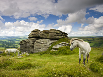 Adam Burton Art > Ponies Graze In Summer Beside Chinkwell Tor In Dartmoor National Park, Devon, England, 2008 Art Print