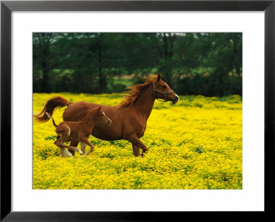 Adam Jones Art > Arabian Foal And Mare Running Through Buttercup Flowers, Louisville, Kentucky, Usa Art Print