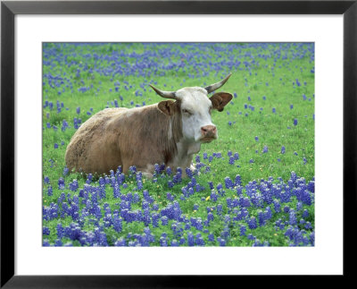 Alan And Sandy Carey Art > Cow (Mixed Breeds) In Bluebonnets Texas Art Print