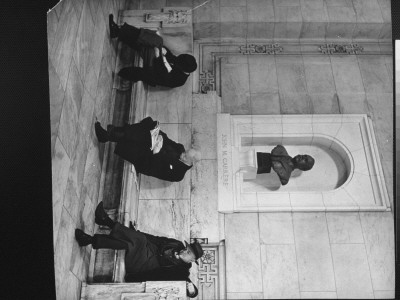 Alfred Eisenstaedt Art > Men Sleeping On Stone Bench Below Bust Of Architect John M. Carrere In New York Public Library Art Print