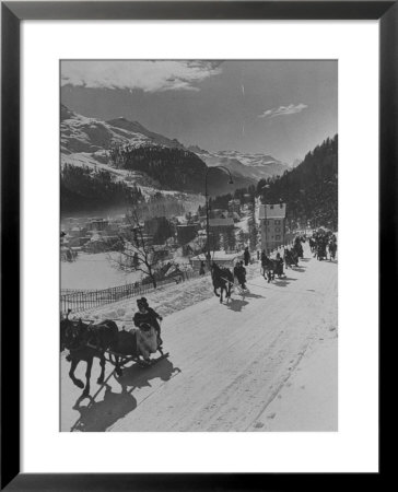 Alfred Eisenstaedt Art > Sunday Sleigh-Rides In Snow-Covered Winter-Resort Village St. Moritz Art Print