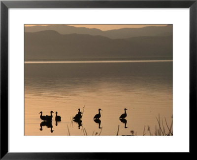 Anders Blomqvist Art > Waterfowl On The Lake Silhouetted At Dawn, Lake Baringo, Rift Valley, Kenya Art Print