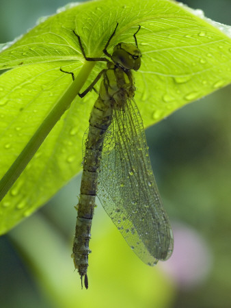 Andy Sands Art > Brown Hawker Aeshna Dragonfly Newly Emerged Adult Sheltering From Rain, West Sussex, England, Uk Art Print