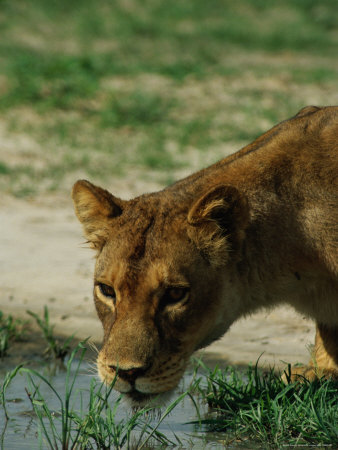 Beverly Joubert Art > A Female African Lion Tests The Water First Before Taking A Drink Art Print