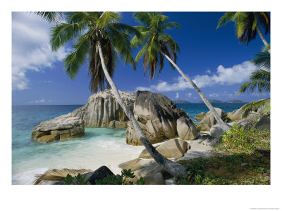 Bill Curtsinger Art > A Beach And Palm Trees On La Digue Island Art Print