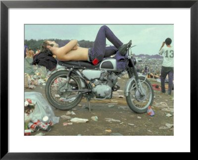 Bill Eppridge Art > Shirtless Man In Levi Strauss Jeans Lying On Motorcycle Seat At Woodstock Music Festival Art Print