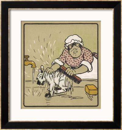 Cecil Aldin Art > Little White Dog Is Washed Under The Cold Tap - He's Not Very Happy About It! Art Print