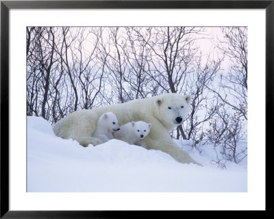 Daniel Cox Art > Polar Bears, Mother With Very Young Cubs Just Leaving Winter Den, Manitoba, Canada Art Print