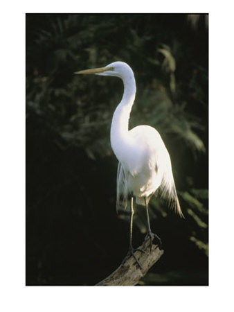 Ed George Art > A White Egret Perches On A Tree Stump Art Print