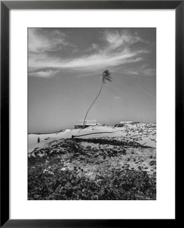 Eliot Elisofon Art > Towering Palm Tree Swayed By Wind As It Stands Next To House On Sandy Beach In Desolate Area Art Print