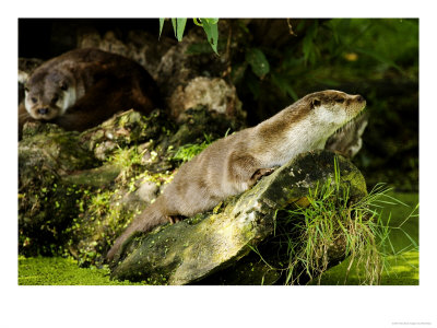 Elliott Neep Art > Pair Of Otters Relaxing On Low Boughs Of A Willow Tree, Earsham, Uk Art Print