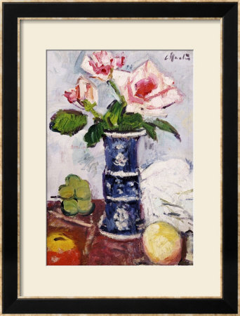 If you are interested in a price quote and purchase of this print, please contact us using the form provided and we will contact you regarding George Leslie Hunter's Pink Roses In A Chinese Blue And White Gu-Shaped Vase availability and current market price on the secondary market. This art piece is a hard to find print, but we can attempt to locate one available for sale for you. If you need an art appraisal, we do not currently perform these at this time.