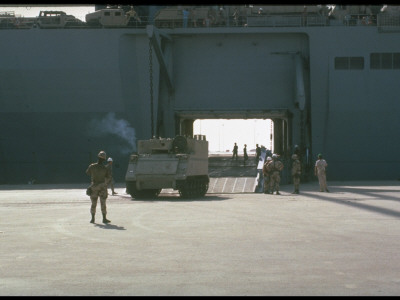 Gil High Art > Us Army Close Combat Equipment Offloading At Port, To Join Desert Shield Gulf Crisis Operation Art Print