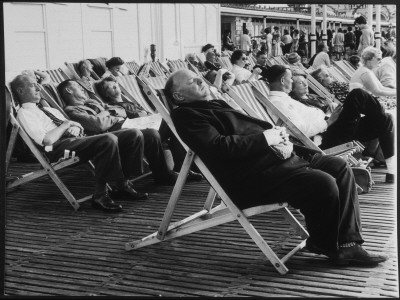 Henry Grant Art > Holidaymakers Snooze In Deck Chairs On The Sea Front At Brighton, West Sussex, England Art Print