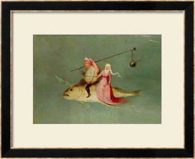 Hieronymus Bosch Art > The Temptation Of St. Anthony, Right Hand Panel, Detail Of A Couple Riding A Fish Art Print