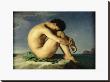 Hippolyte Flandrin Art > Jeune Homme Nu Assis Au Bord De La Mer Art Print