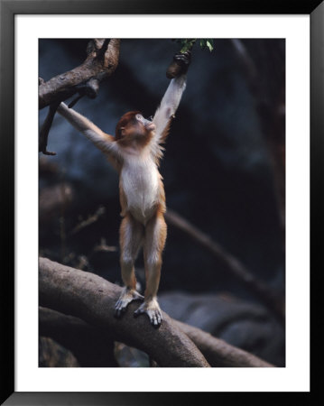Ira Block Art > Young Proboscis Monkey Reaching For A Tree Branch In A Zoo Enclosure, Bronx Zoo, New York Art Print