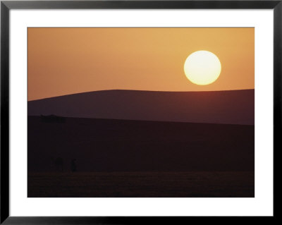 James L. Stanfield Art > The Sun Hangs Over The Semi-Silhouetted Outline Of Two Large Hills Art Print