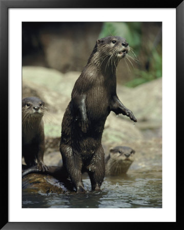 Jason Edwards Art > A Group Of Asian Small-Clawed Otters Wade In A Pool Of Water Art Print