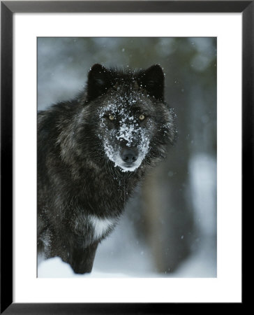 Jim And Jamie Dutcher Art > Snow Flakes Cover The Face Of A Black-Colored Gray Wolf, Canis Lupus Art Print