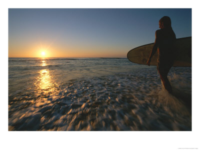 Jimmy Chin Art > A Woman Enters The Ocean With A Surfboard Under Her Arm Art Print