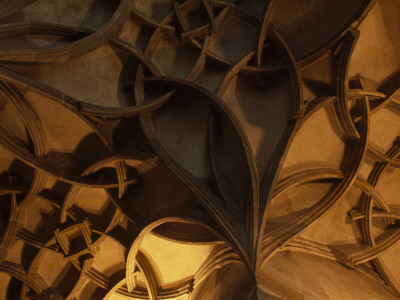 Joe Cornish Art > Late Gothic Rib Vaulted Ceiling, Horse Riders Staircase, Vladislav Hall, Prague Castle Art Print