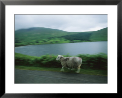 Joel Sartore Art > A Fast Moving Sheep Blurs By A Mountain Pond Art Print