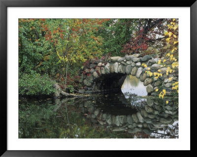 John & Lisa Merrill Art > Trees By Pond And Stone Bridge At Hecksher Museum, Long Island, New York, Usa Art Print