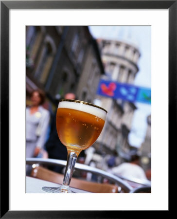 John Banagan Art > Glass Of Beer At Cafe With Cathedral In Background, Boulogne-Sur-Mer, France Art Print