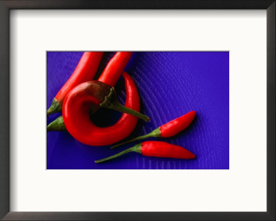 John Hay Art > Red Chilli Peppers On A Blue, Patterned Plate, Australia Art Print