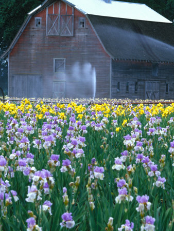 Julie Eggers Art > Field Of Iris With Barn, Oregon, Usa Art Print
