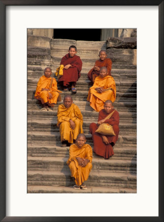 Keren Su Art > Monks On The Staircase At Angkor Wat, Siem Reap, Cambodia Art Print