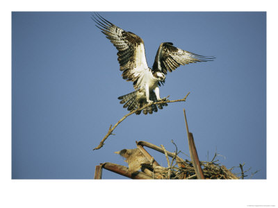 Klaus Nigge Art > Osprey Landing In Its Nest With A Piece Of Building Material Art Print