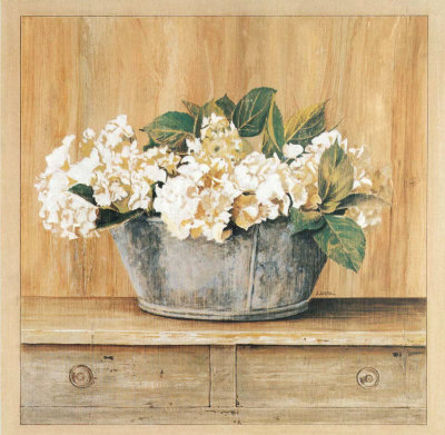 Laurence David Art > Les Fleurs Blanches, Hortensias Art Print