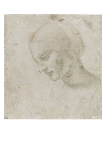 Leonard De Vinci Art > Tete De Jeune Femme, De Profil A Gauche, Et Croquis D'un Homme En Buste Art Print