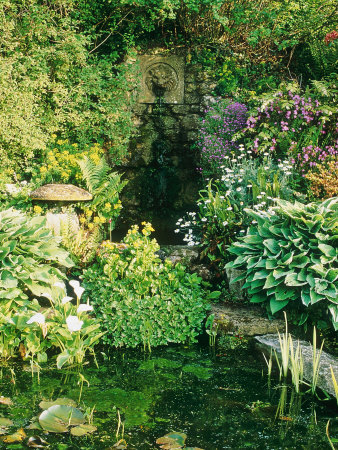 Mark Bolton Art > Small Pond, Lion's Head Water Spout, Saddle Stone Horn Park Gardens, Dorset Art Print