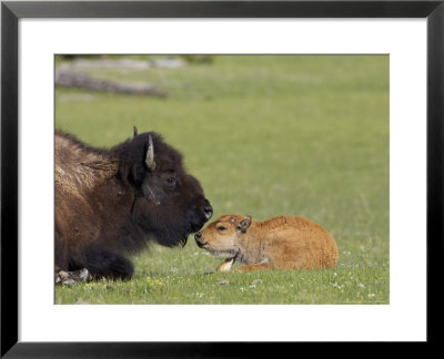 Mark Hamblin Art > Bison, Young Calf And Mother Laid Down Resting In Meadow, Usa Art Print