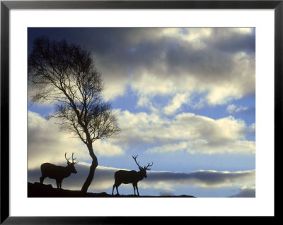 Mark Hamblin Art > Red Deer, Cervus Elaphus Stags Silhouetted Under Tree, Cair Ngorms National Park, Scotland Art Print