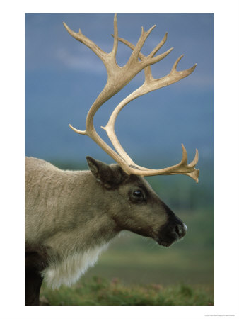 Mark Hamblin Art > Reindeer, Rangifer Tarandus Portrait Of Adult Late Summer, Scotland Art Print