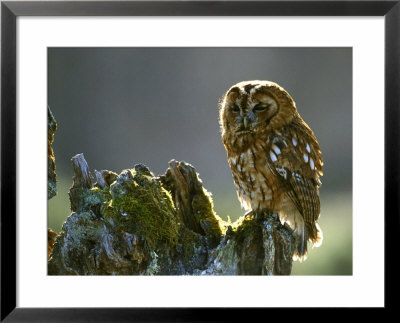 Mark Hamblin Art > Tawny Owl, Adult Perched On Decaying Birch Stump, Scotland Art Print