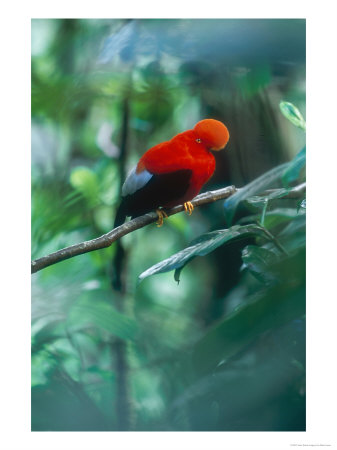 Mark Jones Art > Andean Cock Of The Rock, Male Courtship Display, Choco Darien Cloud Forest, Ecuador Art Print