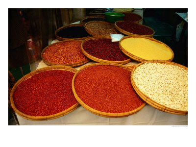 Martin Moos Art > Baskets Of Grains For Sale In Market, Naze, Japan Art Print