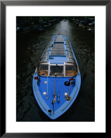 Martin Moos Art > Blue Canal Tour Boat On Canal, Amsterdam, North Holland, Netherlands Art Print