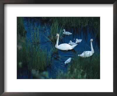 Melissa Farlow Art > A Family Of Trumpeter Swans Swims Near Denali National Park Art Print