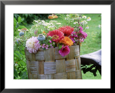 Michael Davis Art > Dahlia, Papaver, Malva, Zinnia And Calendula, Collection Of Picked Flowers In A Woven Basket Art Print