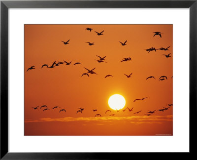 Norbert Rosing Art > Birds In Flight Against Sunset Sky, Wattenmeer National Park, Germany Art Print