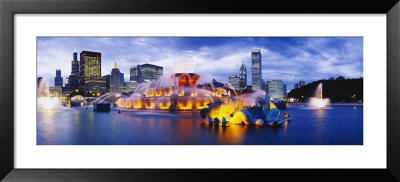 Panoramic Images Art > Fountain Lit Up At Dusk, Buckingham Fountain, Grant Park, Chicago, Illinois, Usa Art Print